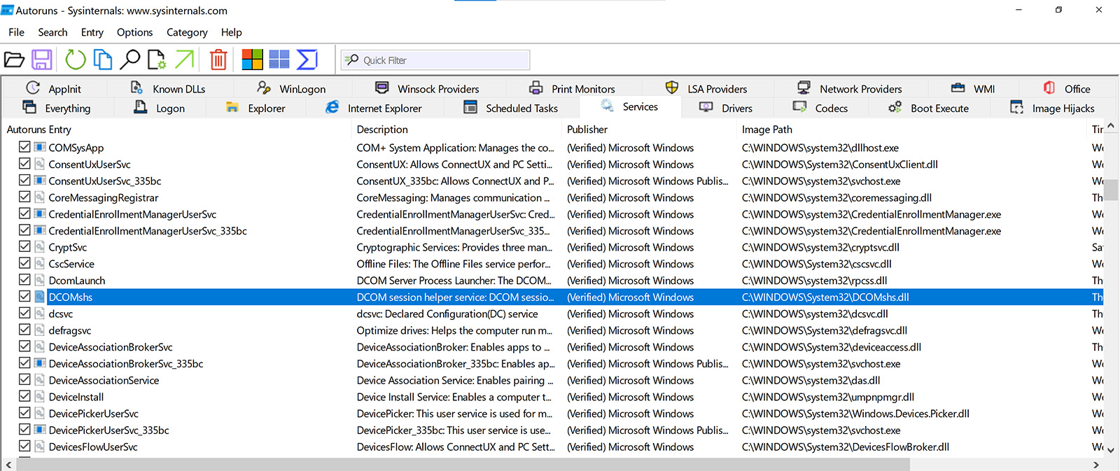 - The client DLL is signed with my own certifikate and its clonning and acts as a legal Microsoft Windows verified file even under Sysinternals autoruns detection tool.